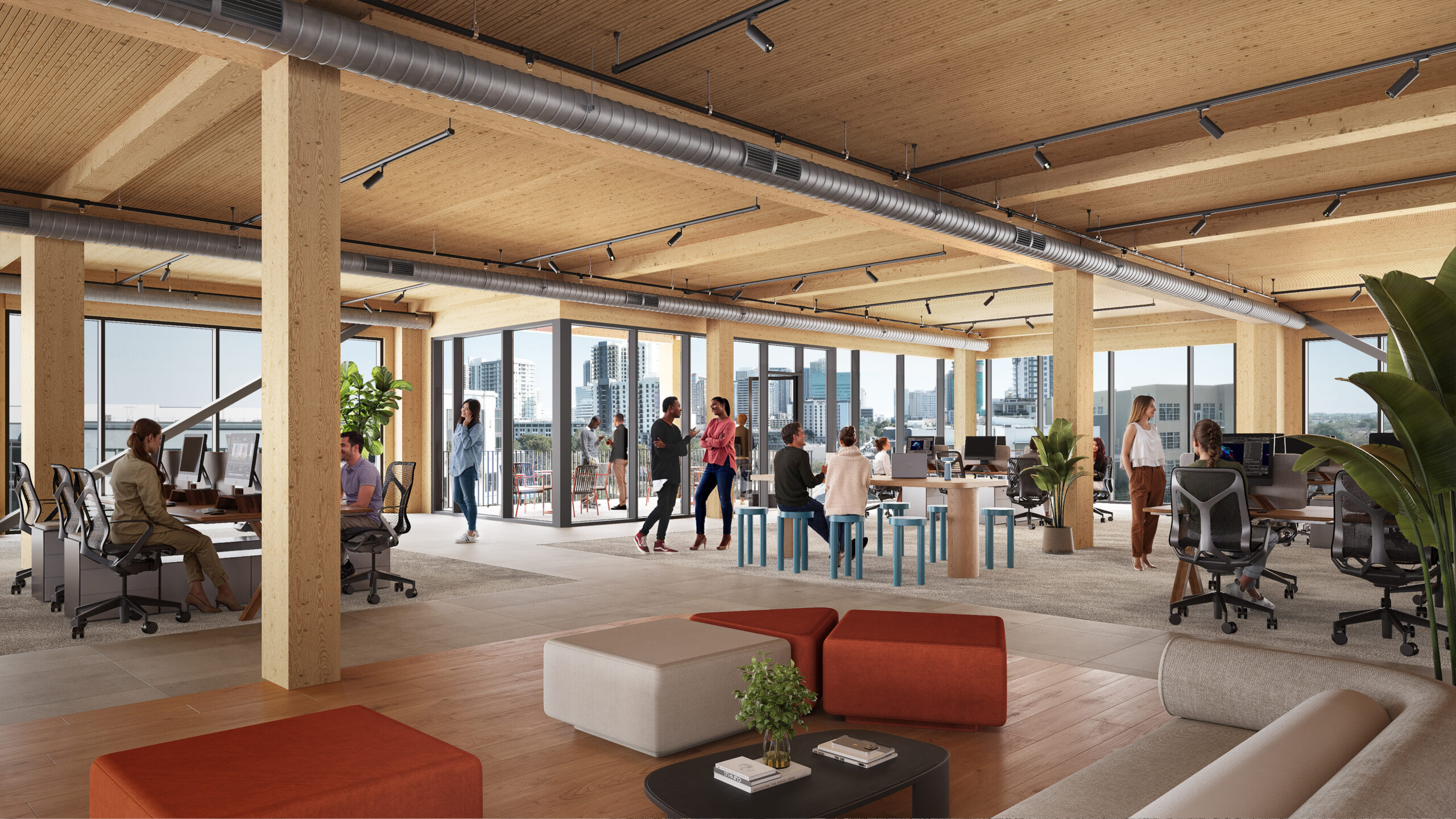 The structure will yield 180,000 square feet of Class AA office space and is the first mass timber office building in Fort Lauderdale. Designed with an emphasis on sustainability and the wellness driven qualities associated with mass timber construction, the building features open floor plates intended to support collaborative layouts for tenants in technology, creative services and professional industries.
