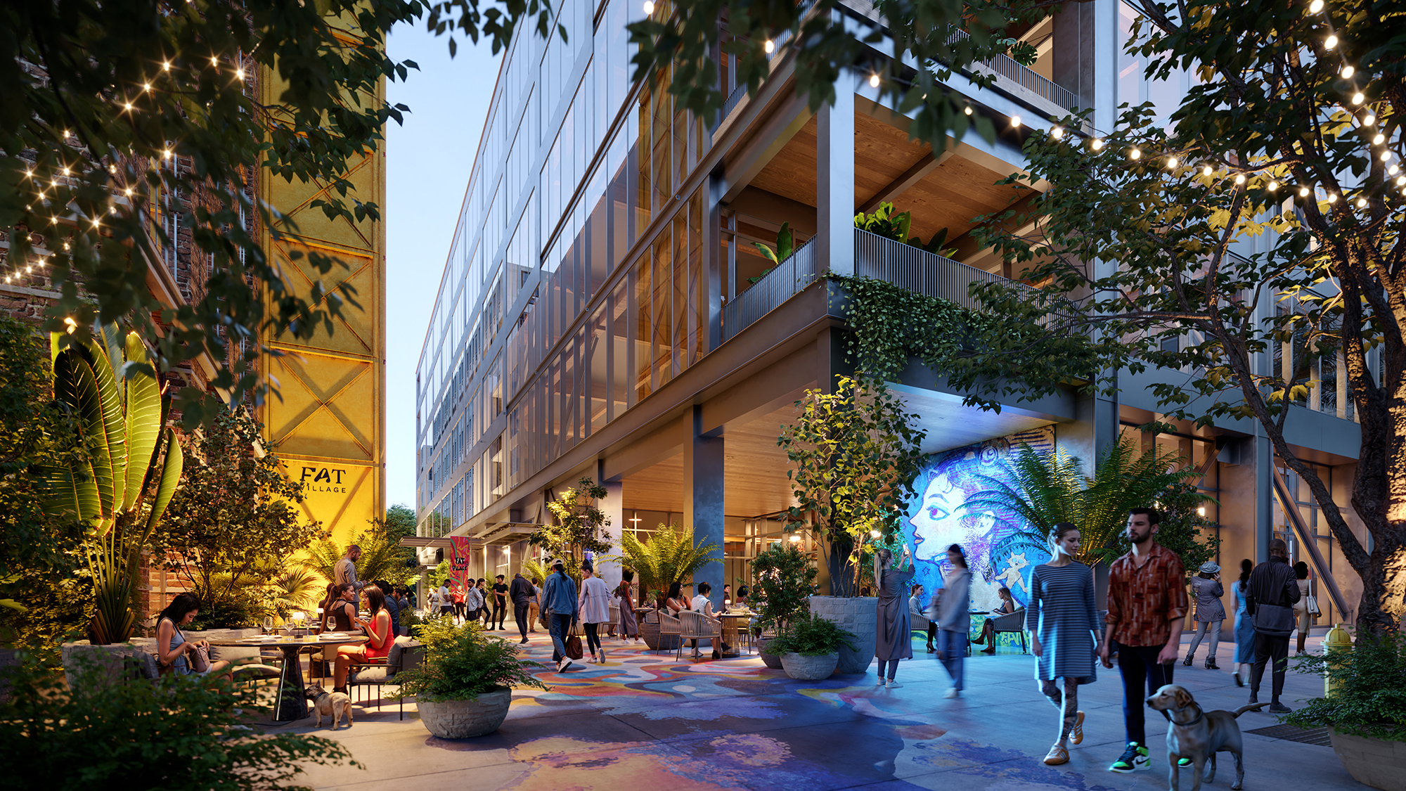 T3 FAT Village serves as the commercial anchor for the larger redevelopment, which will introduce residential buildings, retail, dining and cultural spaces while retaining the district’s previous artistic character. The first multifamily building topped out in March 2025 and a second followed in May.