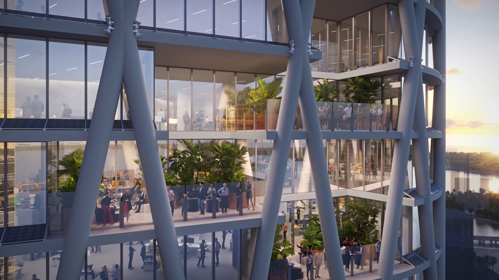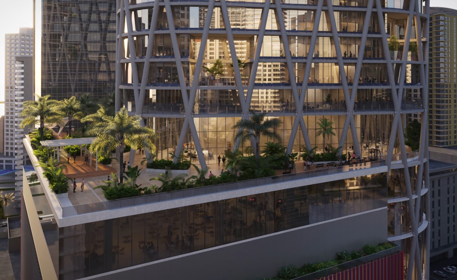 — 50-story, 1,042,886 RSF office tower with striking exoskeleton frame design