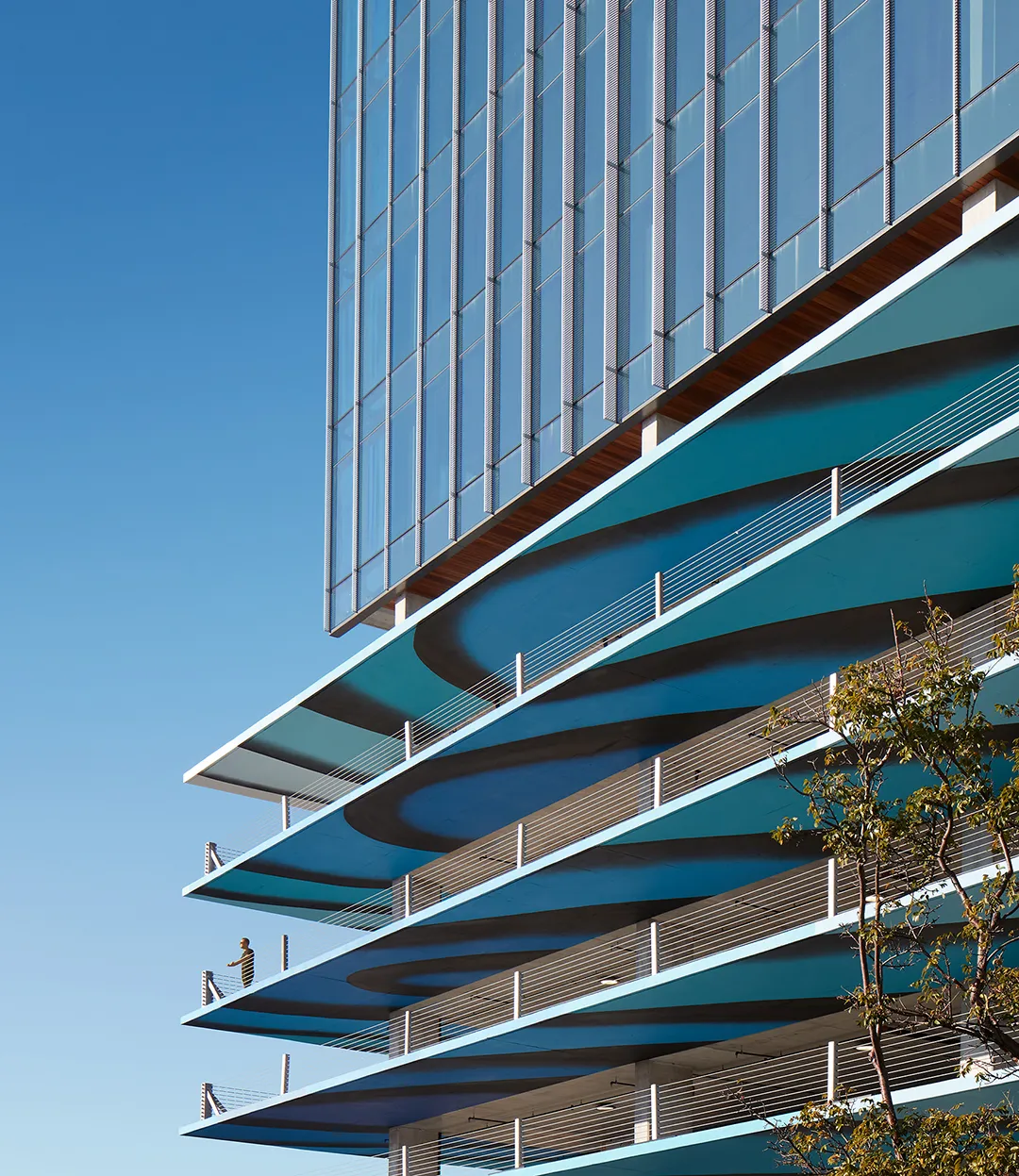 — Open-air balconies on every floor totaling approximately 12,800 SF, supporting natural ventilation and indoor-outdoor connectivity