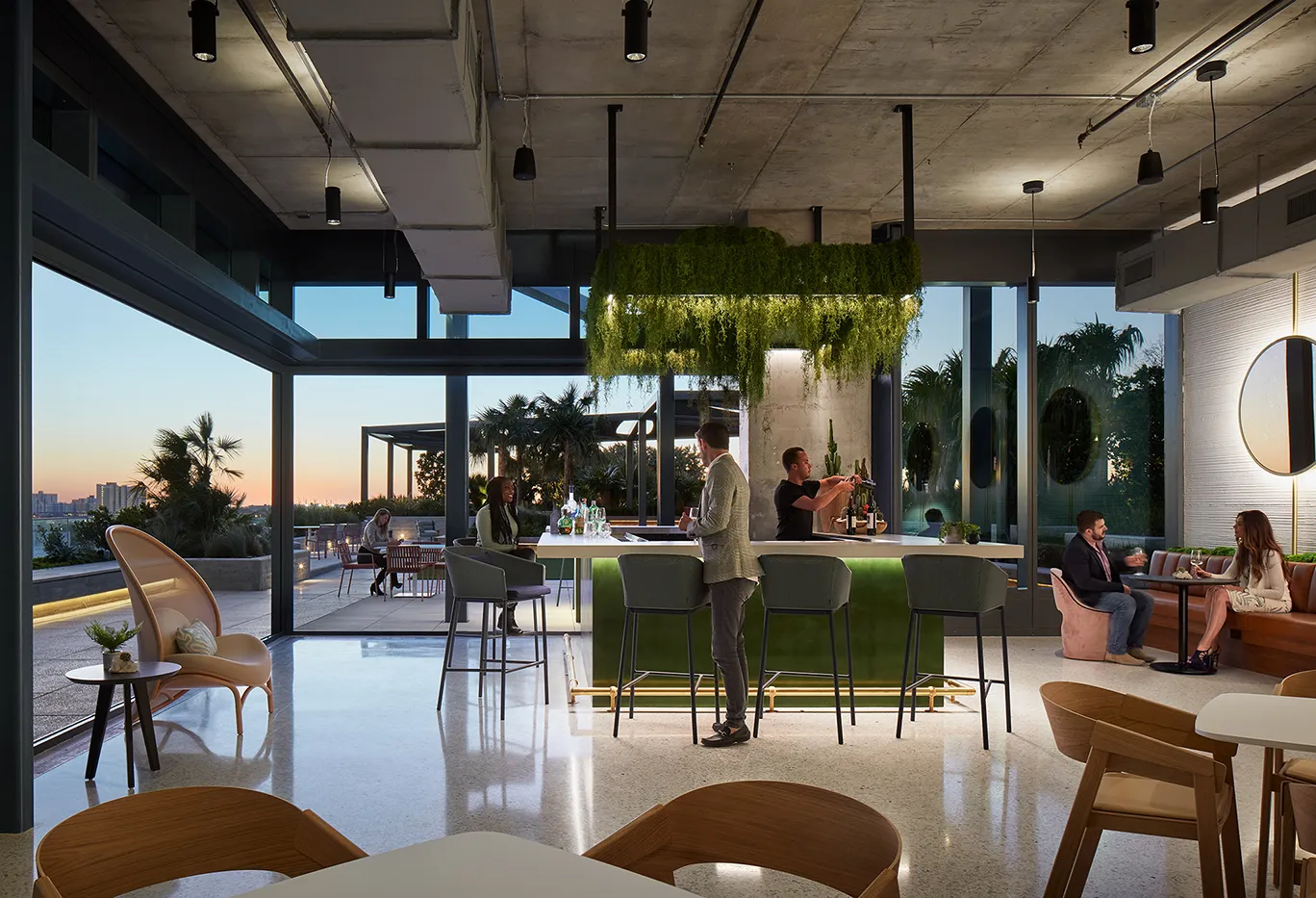 Introducing 545wyn, a ground-up new construction 298,000 square foot creative office and retail building located at 545 NW 26th Street in Wynwood. Developed by Sterling Bay and designed by Gensler, 545wyn was created with three simple, yet crucial goals: to elevate Miami’s typical office experience, to authentically reflect Wynwood’s vibrancy and to engage the neighborhood.